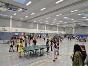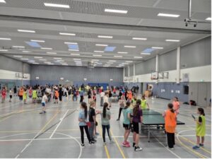 Insgesamt 37 Mannschaften (Viererteams) meldeten sich für das Turnier und traten innerhalb der Jahrgangsstufen in Mädchen- bzw. Jungen/Mixed-Teams gegeneinander an. An allen Tischen entwickelten sich spannende und actionreiche Ballwechsel. Mit großem Einsatz und viel Freude kämpften die Teams um jeden Punkt.